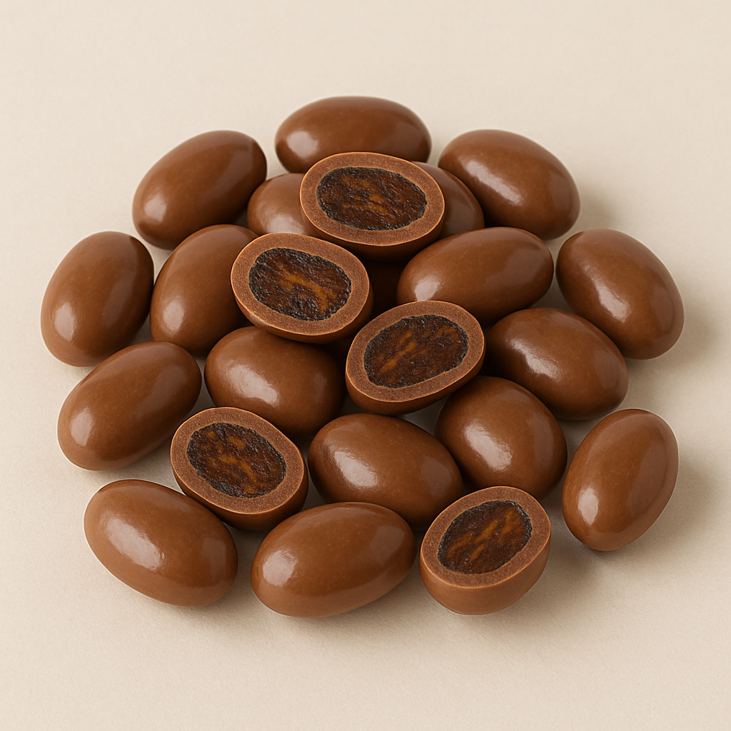 O Drageado de Tamara é uma verdadeira iguaria que combina saúde e sabor em cada mordida. Feito com tâmaras selecionadas, esse snack é envolto em uma fina camada de chocolate de alta qualidade, proporcionando uma experiência única e irresistível. As tâmaras são conhecidas por suas propriedades energéticas, ricas em fibras, vitaminas e minerais, tornando este produto uma excelente opção para quem busca um lanche saudável e nutritivo.